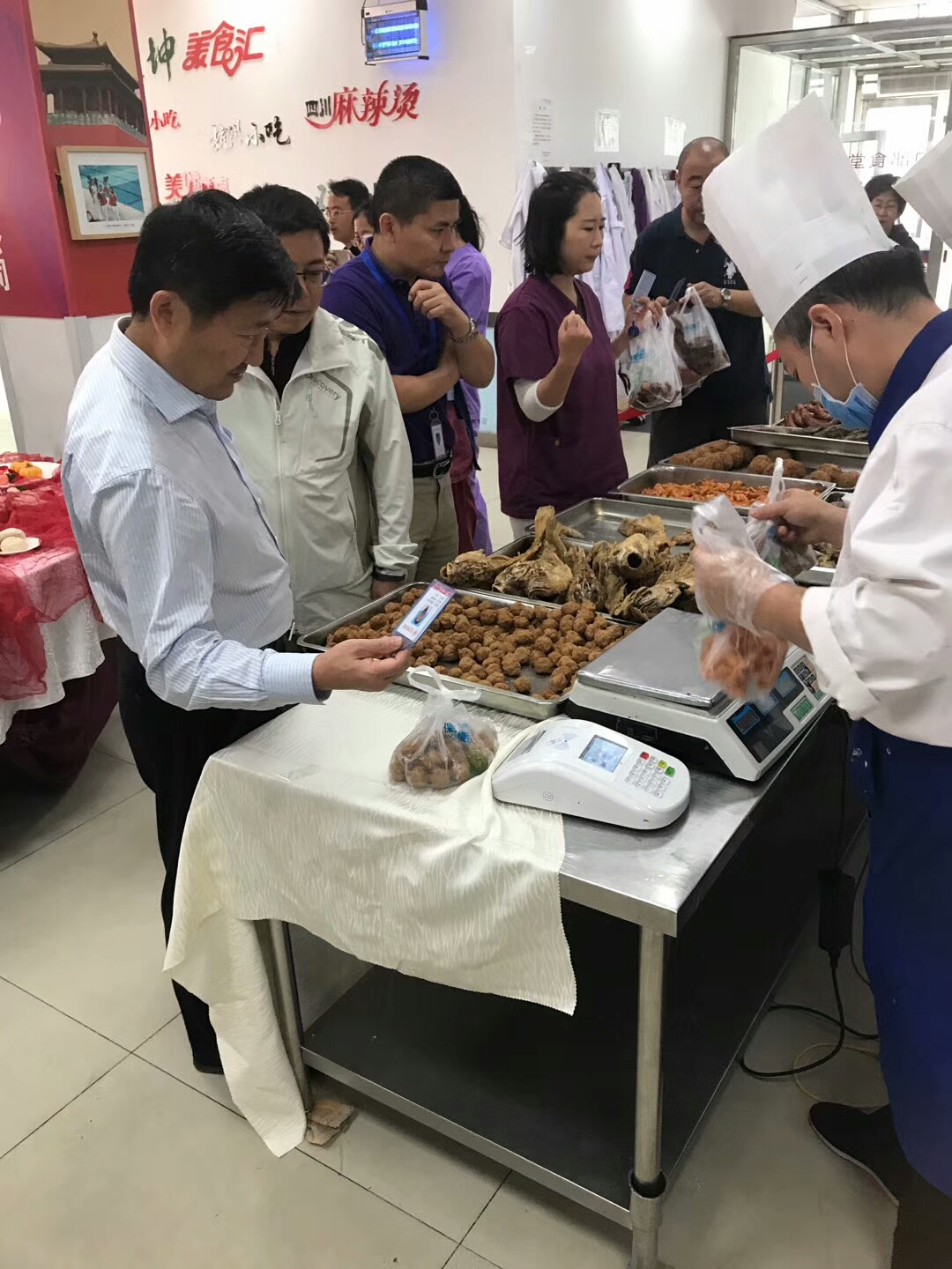 6月21日,丁局带人来参观国开行项目餐厅,走到风味小吃档口时说:"有夏至饼,今天是夏至吗?"经理说:"是啊,我们不仅准备夏至饼还有夏至蛋、牛肉拉面、酸梅汤。"丁局说:"想得真周到,夏天越来越炎热,喝一些酸梅汤真不错。"参观到热菜,有人发现菜单上还有每道菜的热量和营养价值及功效,表示称赞。当问到红色菜单和绿色菜单有什么区别时,我们说绿色菜单代表低油、低盐、低糖。参观结束,领导对我们表示了认可。