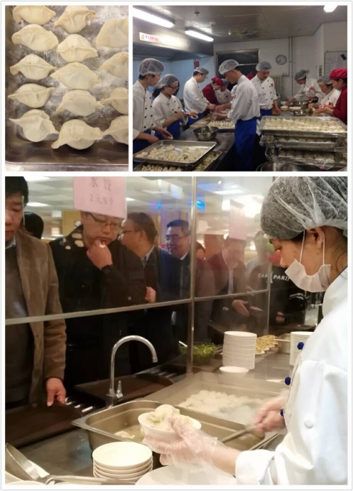 还有礼信年年人保总部项目餐厅,在公司督导部李静洁老师的建议下,也实现了手工水饺当餐制作。项目经理组织前厅4位服务员和两位洗消大姐同面点人员一起包饺子,厨师长也来帮忙,大家在忙碌但欢快的氛围中完成了手工水饺现包现煮。